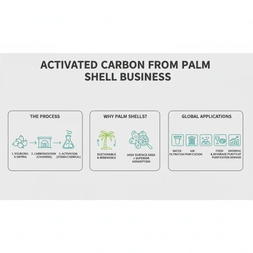 The process involves two main stages: carbonization and activation. First, palm shells are heated in a furnace with limited oxygen to turn them into charcoal (carbonization). Then, the charcoal is treated with high-temperature steam or chemical agents to create a porous structure (activation), which greatly increases its surface area.