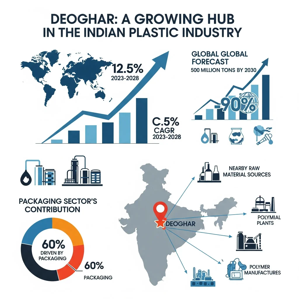 Analysts expect the Indian plastic industry to grow at a compound annual growth rate of around nine percent, with the packaging sector driving nearly sixty percent of the demand. As global demand for plastics is set to exceed six hundred million tons by 2030, India is poised to expand its share in the global market. Deoghar’s proximity to raw material sources and major industrial corridors makes it well-suited to meet both domestic and export demand.